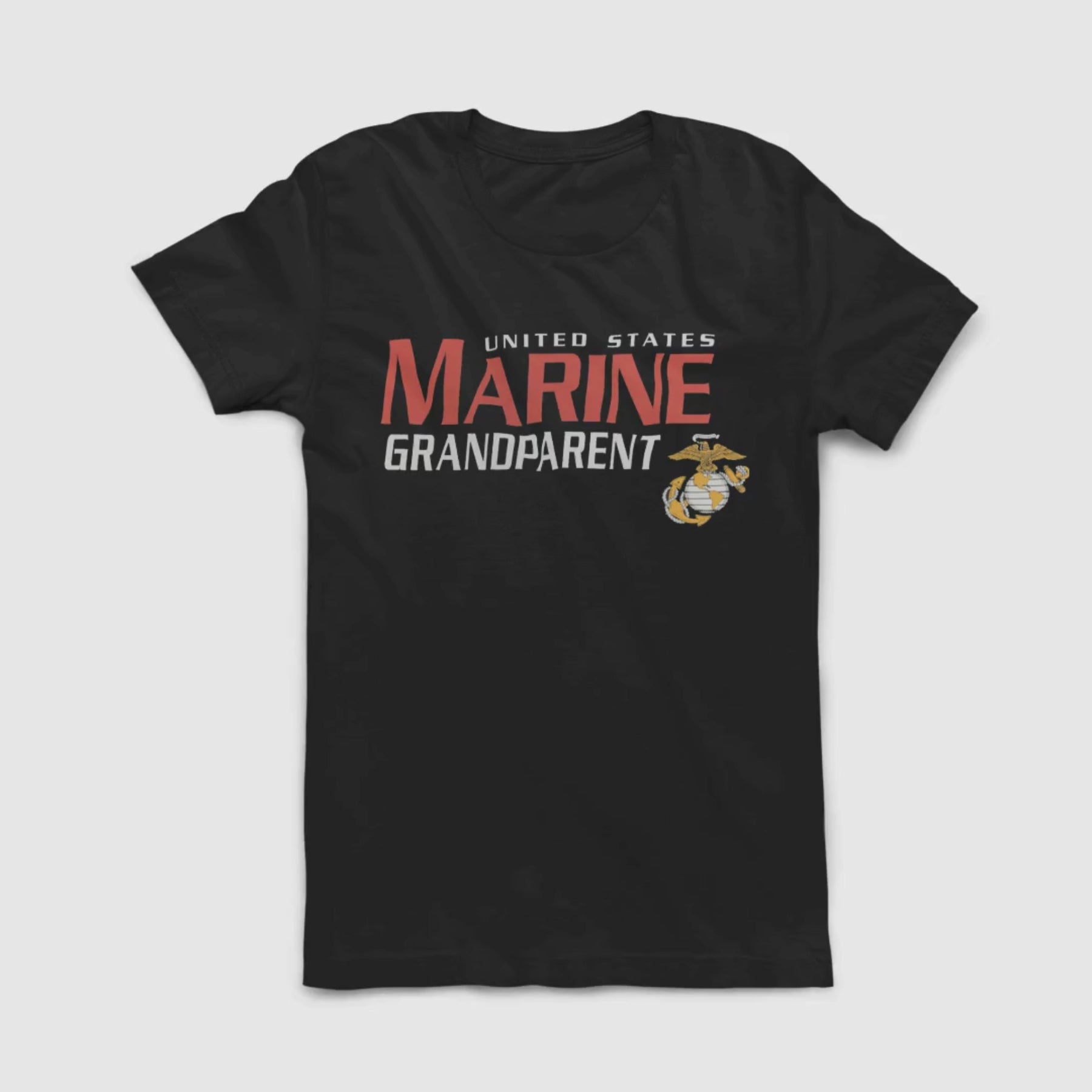 Proudly support your Grandson or Granddaughter with this bold Marines graphic T-shirt in Black! When you wear this Marines T-shirt, you let everyone know how proud you are of your family!