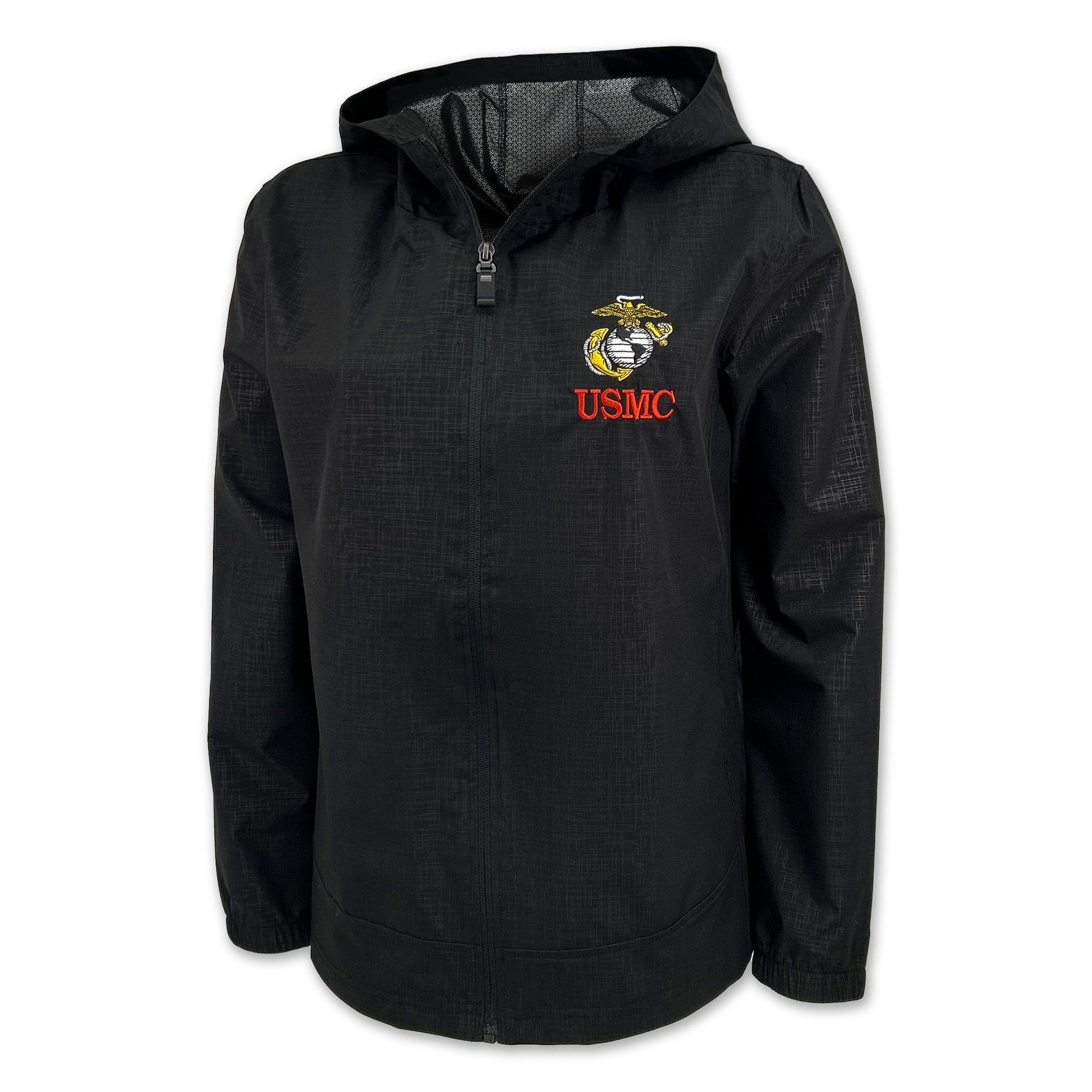 Protect yourself from stormy conditions and blustery days with the Marines Embroidered EGA Ladies Hooded Wind Jacket. This stylish full zip windbreaker is super lightweight, perfect for running errands and keeping on hand in your car or backpack.