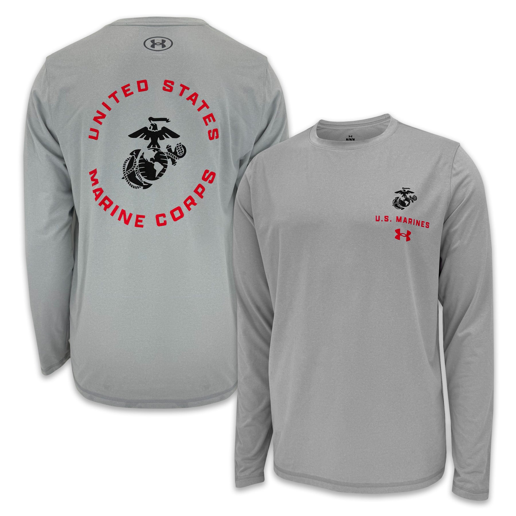Show your Marines pride in peak performance gear. This United States Marines EGA Under Armour Tech Long Sleeve T-Shirt features moisture-wicking, quick-dry fabric designed to keep you cool and comfortable. Finished with the official EGA front and center on the back, it’s built for both training and everyday wear.