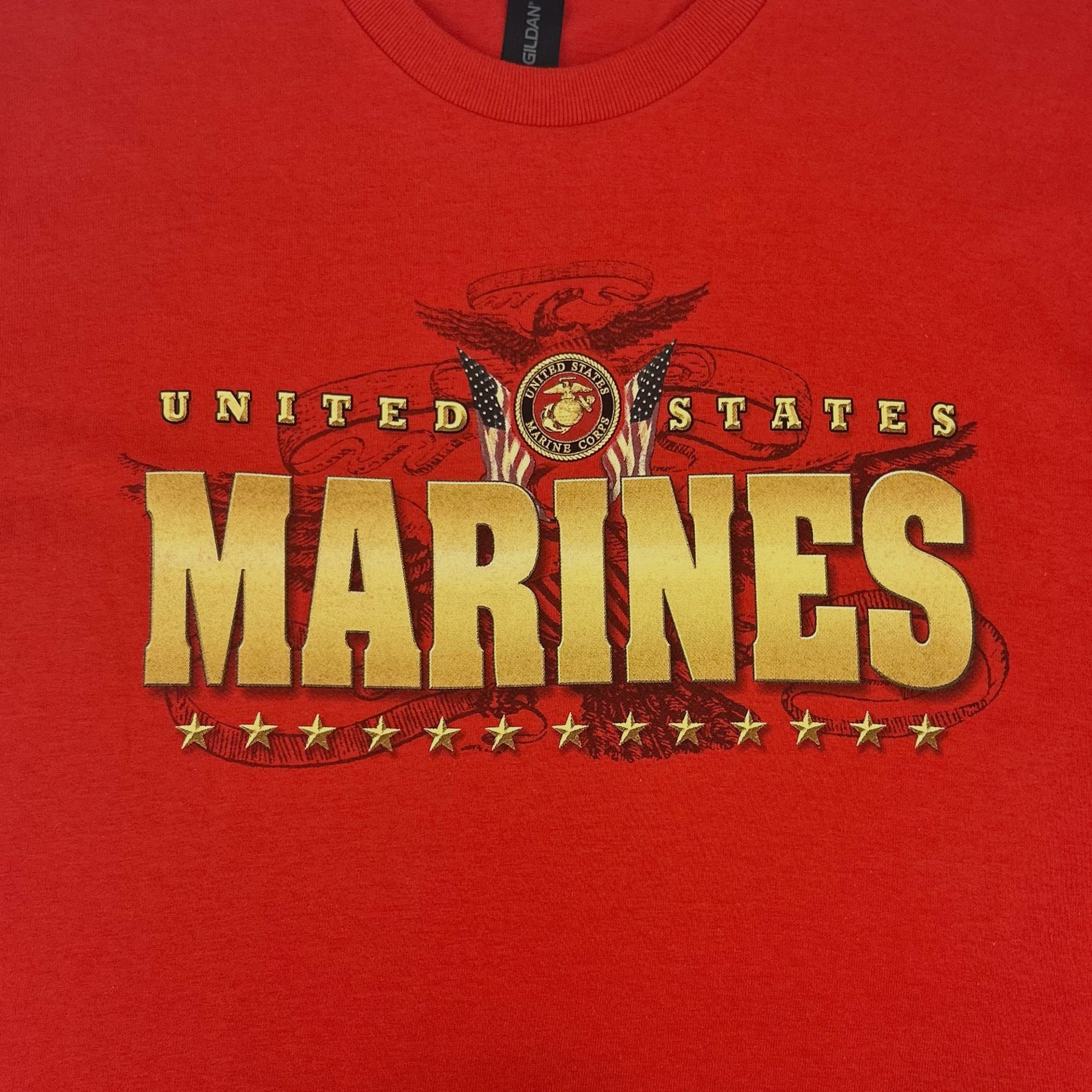 Show your Marines pride with the United States Marines Gold Flags T-Shirt. Featuring a bold, patriotic design, this tee embodies the strength and dedication of the U.S. Marines. Crafted from soft, high-quality fabric, it ensures all-day comfort with a timeless, classic look!