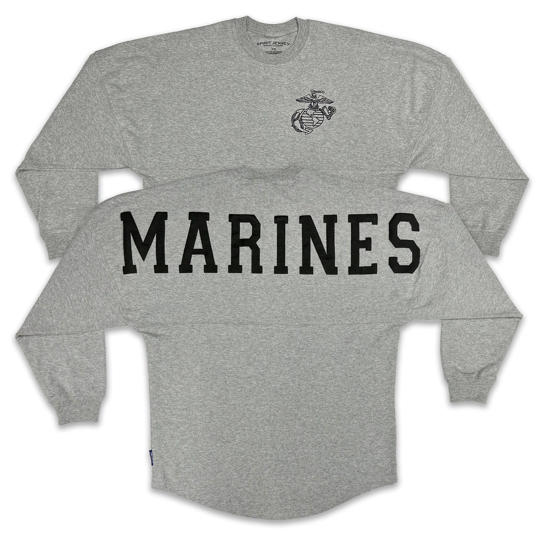 Show off your Marines pride in style with our Marines EGA Original Crew Neck Spirit Jersey! This comfortable, oversized-fit top features the iconic Marines wordmark across the back, making it perfect for any proud supporter.
